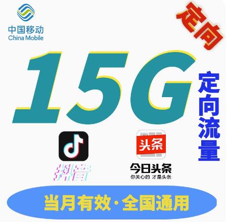 • 昆明移動流量充值15G全國通用頭條抖音定向流量